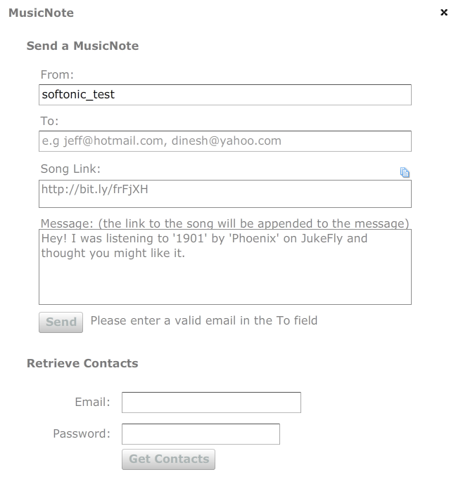 JukeFly propose de nombreuses options d'interaction entre les membres. Ajout d'amis, échange de listes de lecture, messagerie instantanée, l'utilisateur peut même se connecter à son profil Last.fm depuis JukeFly.